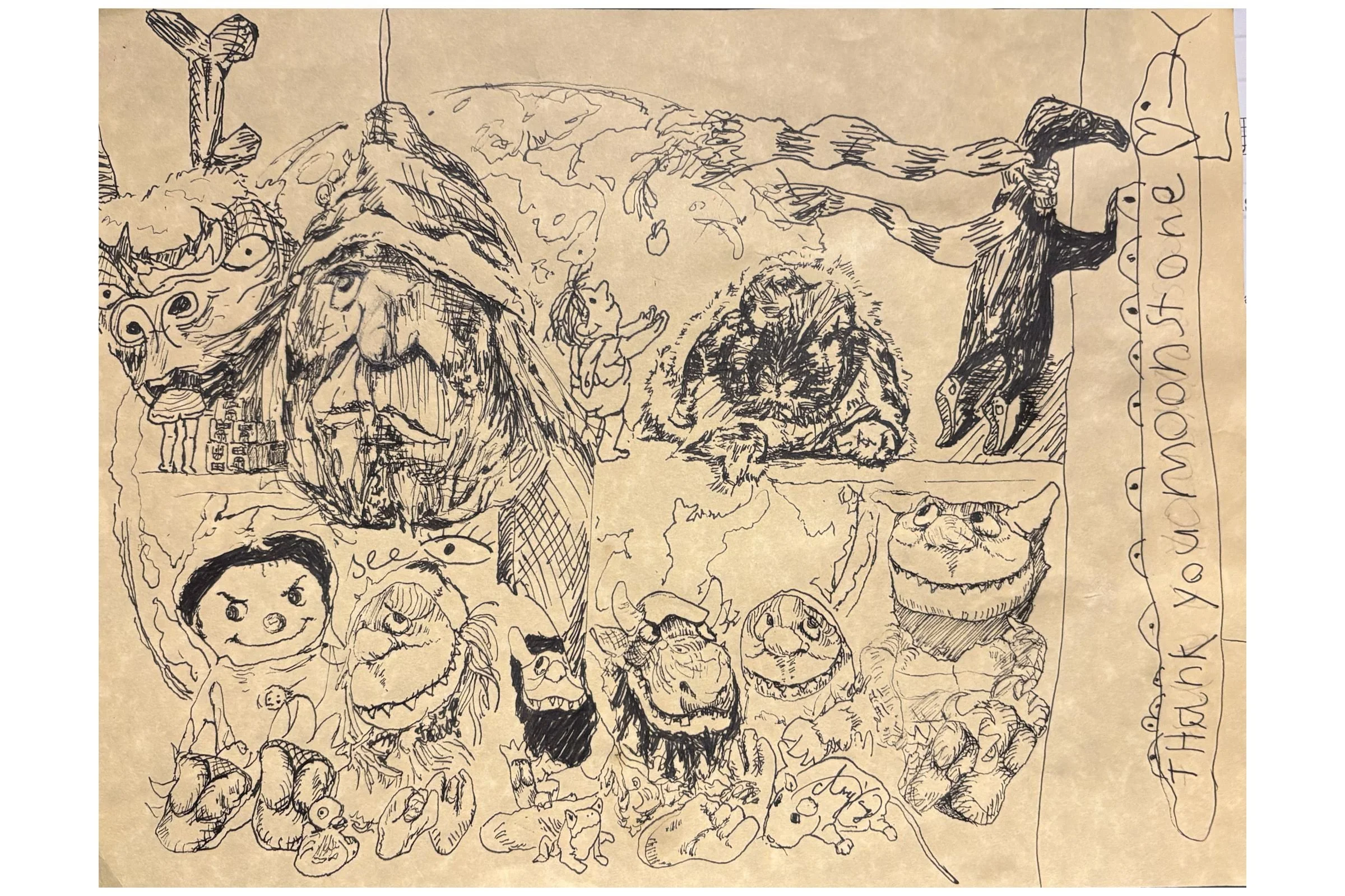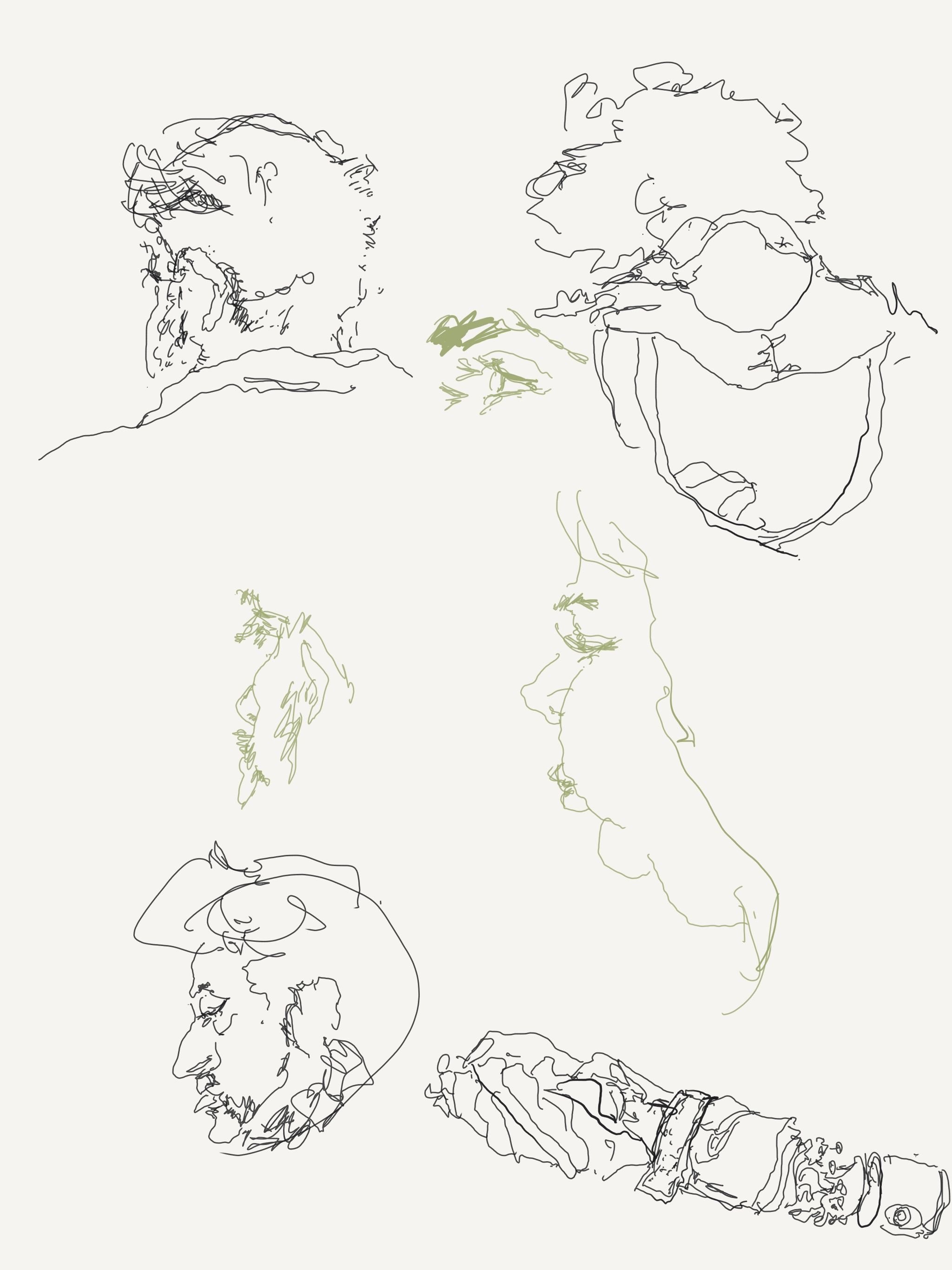 This page is categorized into sketches, paintings, cyanotypes, prints, iPad art, and artwork for concerts. Thank you for your consumption.